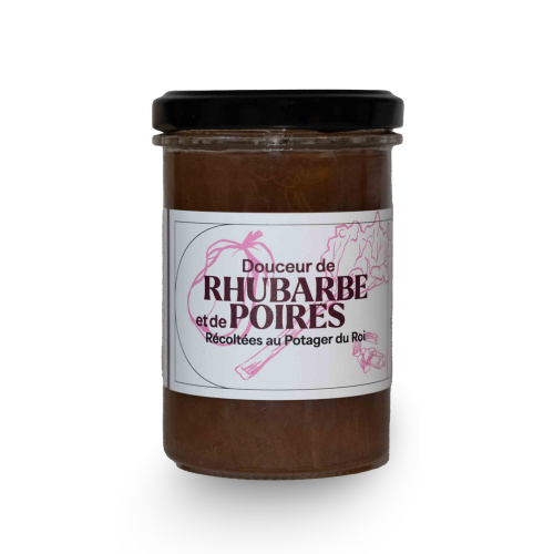 Poires bio, rhubarbe bio, sucre, pectine naturelle de fruits, pur jus de citron.