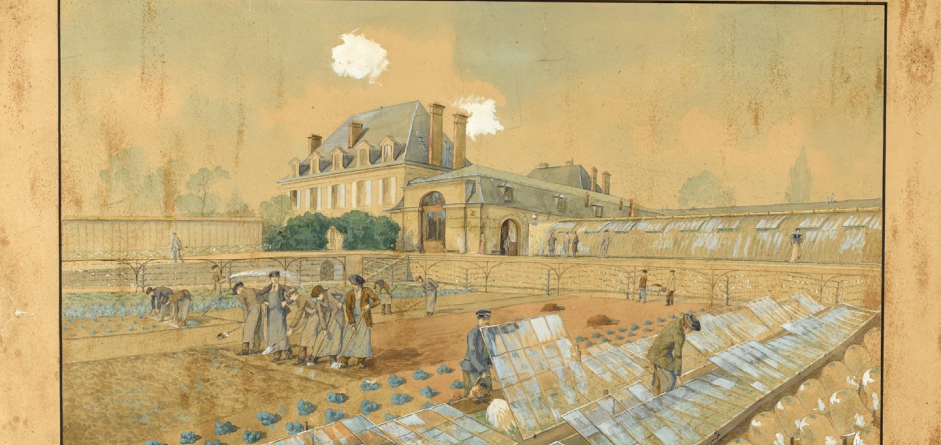 École nationale d’horticulture, culture potagère. aquarelle, 1900. © Archives départementales des Yvelines, fonds ENSP. -